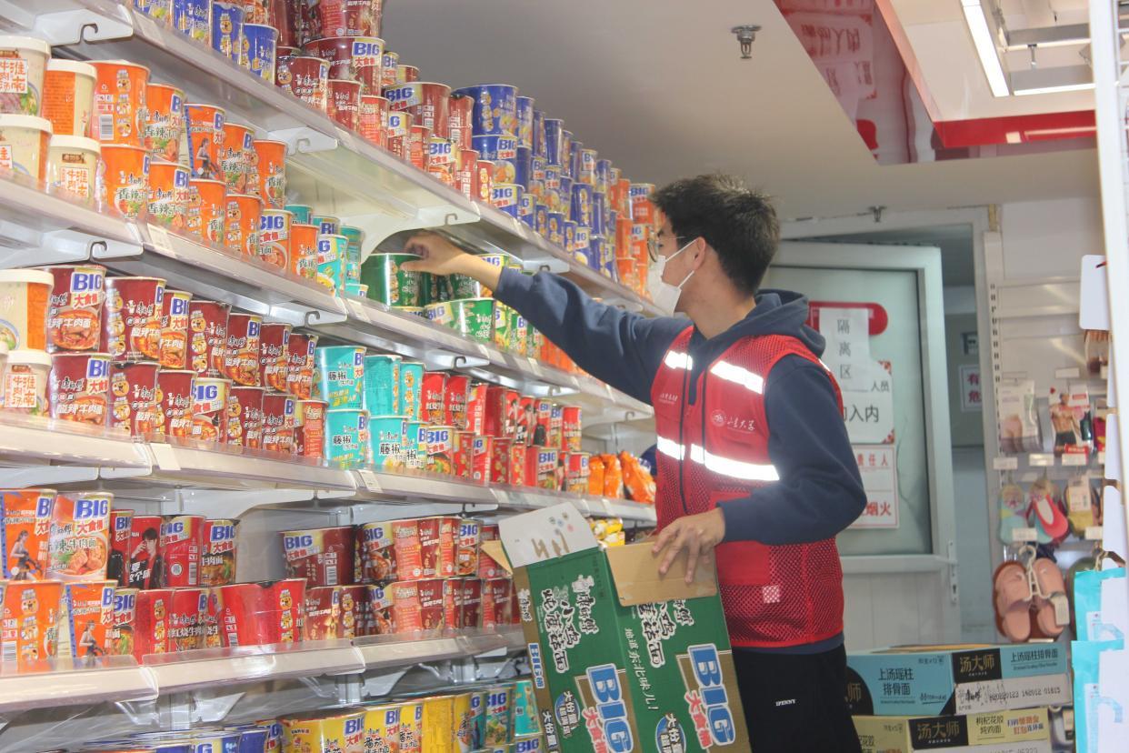 很高兴能作为志愿者参与到校园的疫情防控中去。封校期间,超市作为在校师生的物资堡垒,满足了大家的生活学习需求,因而保证好超市的正常运营十分重要。搬卸物资、填补商品、站岗测温的服务过程是累的,但也让我了解到学校抗击疫情的底气所在——充足的物资、有序的生活和热心的同学们。衷心祝愿疫情早日消散,能与老师同学们重聚课堂、共度春天!——钟炜焘
