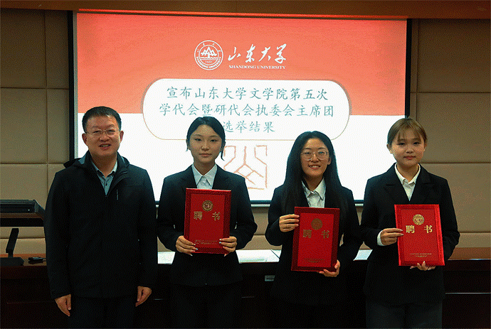 最后,王萌作总结讲话。他肯定了上一学年学生会、研究生会的工作成效,并向新一届学生组织成员及全体文院学子提出四点期望:一要坚定理想信念、弘扬山大精神,以饱满的爱国热情勇担时代使命;二要锤炼过硬本领、注重实践创新,努力提升个人综合素质能力;三要涵养人文情怀、打造特色品牌,展现新一代文院人的担当;四要坚持政治引领、强化组织建设,争做新时代的青年先锋。最后,他鼓励同学们以强国有我的担当和青春有为的激情擘画山大文院新蓝图。