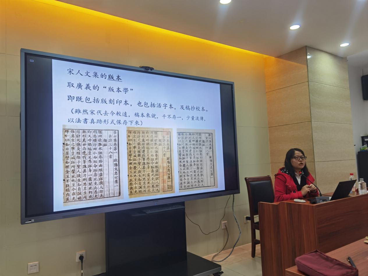 2025年10月25日9时30分,山东大学文学院特邀人民文学出版社古典文学编辑室董岑仕老师,举办以“宋人文集的版本及其研究举隅”为题的讲座。本次讲座由我院姚文昌老师主持。