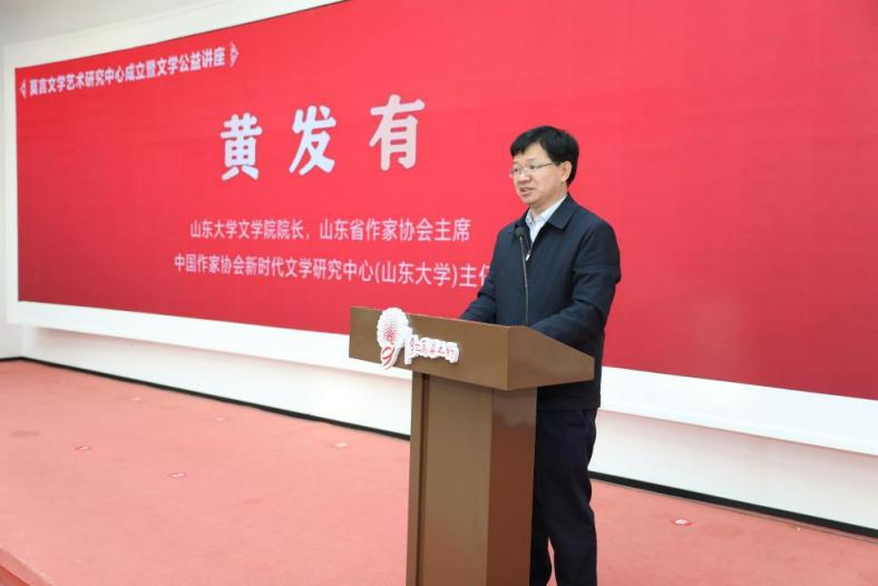 黄发有院长在致辞中指出,莫言文学艺术研究中心的成立是山东大学中国语言文学学科建设进程中的重要事件。他表示,山东大学中文学科拥有扎实的学术资源与研究力量,高密市则具备独特的文学地标与文化底蕴,双方合作将推动莫言研究走向更深层次、更广维度。未来,我院将充分利用这一平台,鼓励作家和学者从莫言的文学世界中汲取养分,创作出更多优秀作品,为社会主义文艺事业繁荣和中华民族现代文明建设贡献力量。