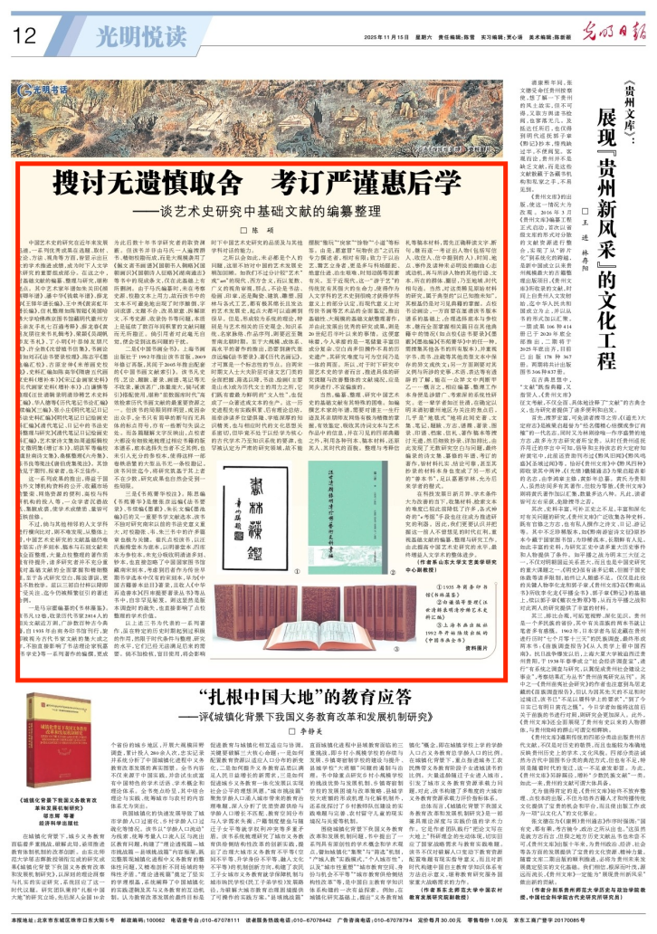 2025年11月15日,我院陈硕副教授在《光明日报》发表了题为《搜讨无遗慎取舍 考订严谨惠后学——谈艺术史研究中基础文献的编纂整理》的学术文章。