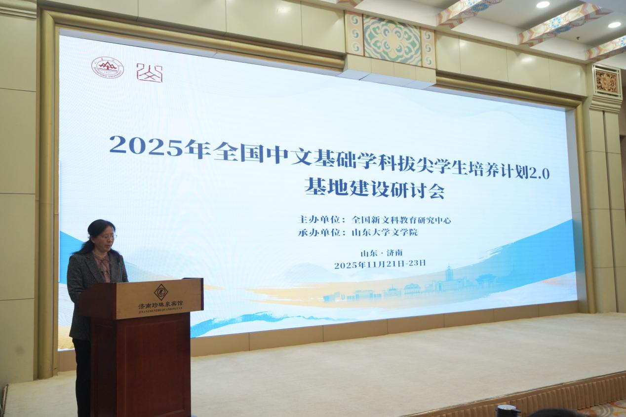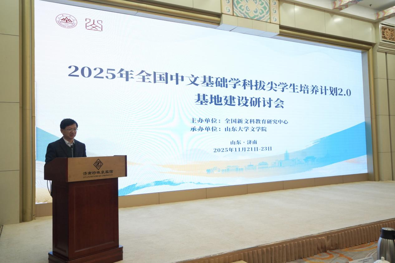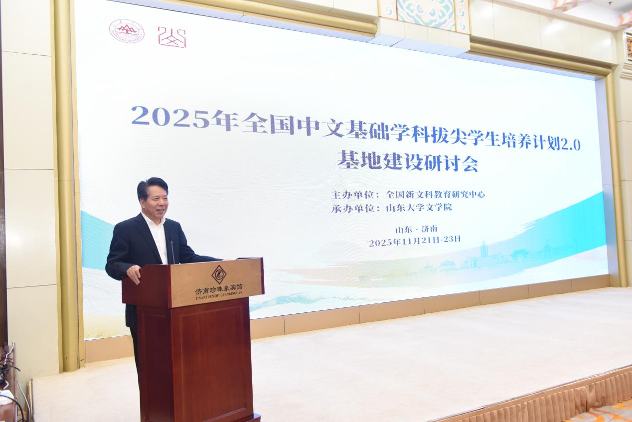 11月22日,由全国新文科教育研究中心主办、我院承办的“2025年全国中文基础学科拔尖学生培养计划2.0基地建设研讨会”在济南开幕。山东大学副校长曹现强出席活动。