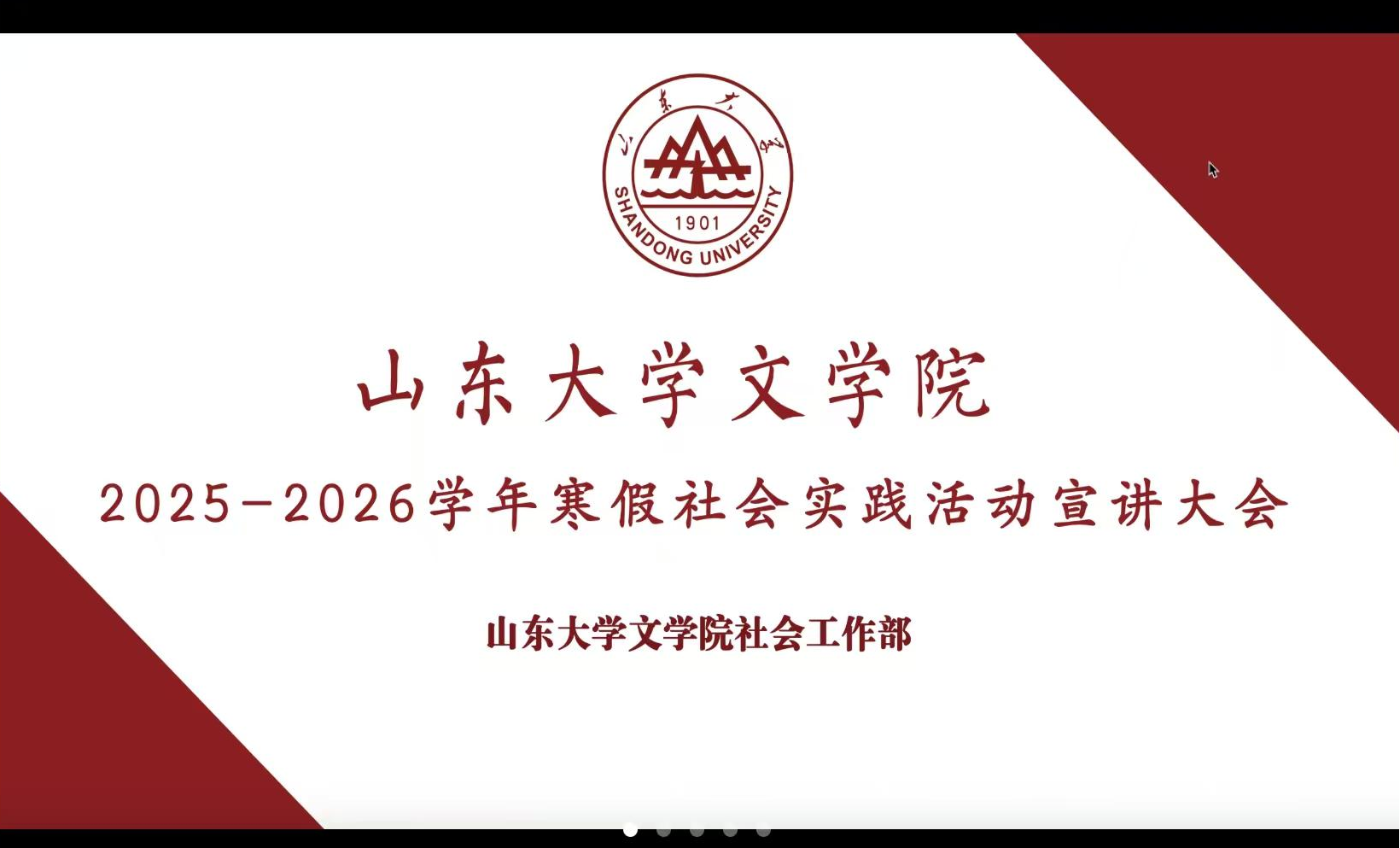 为深入学习习近平新时代中国特色社会主义思想,全面贯彻党的二十届四中全会精神,引导和帮助青年学生通过积极参与社会实践活动提高综合素养,打牢就业基础,近日,我院社工部组织举办了文学院寒假社会实践活动宣讲大会。本次会议分为社会实践总体思路、社会实践主题与流程、社会实践白皮书及结题书、重点问题强调四个部分,帮助同学们明晰实践要求、掌握实践方法,在社会课堂中受教育、长才干、做贡献。