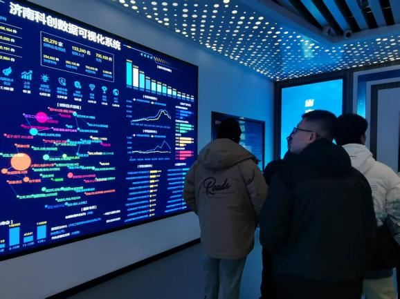 实践首站,团队前往齐鲁科技大厦与山东产业技术研究院高科技创新园展开深度调研。在齐鲁科技大厦,济南科创数据可视化系统令团队成员眼前一亮,屏幕上实时跳动的济南市重点产业创新企业、院校人才分布及专利转化数据,直观展示区域科创动态。随后,团队走进山东产业技术研究院高科技创新园,重点考察其研究生教育事业部。这里构建起的“校、研、企”协同育人新机制,真正做到“把论文写在祖国大地上”。通过与园区工作人员交流,团队成员深刻认识到,两大科研平台均将市场需求精准对接与项目孵化作为核心任务,这种多措并举夯实基础的模式,为团队构建“全方位、专业化”的生涯服务体系提供了宝贵的现实启示。