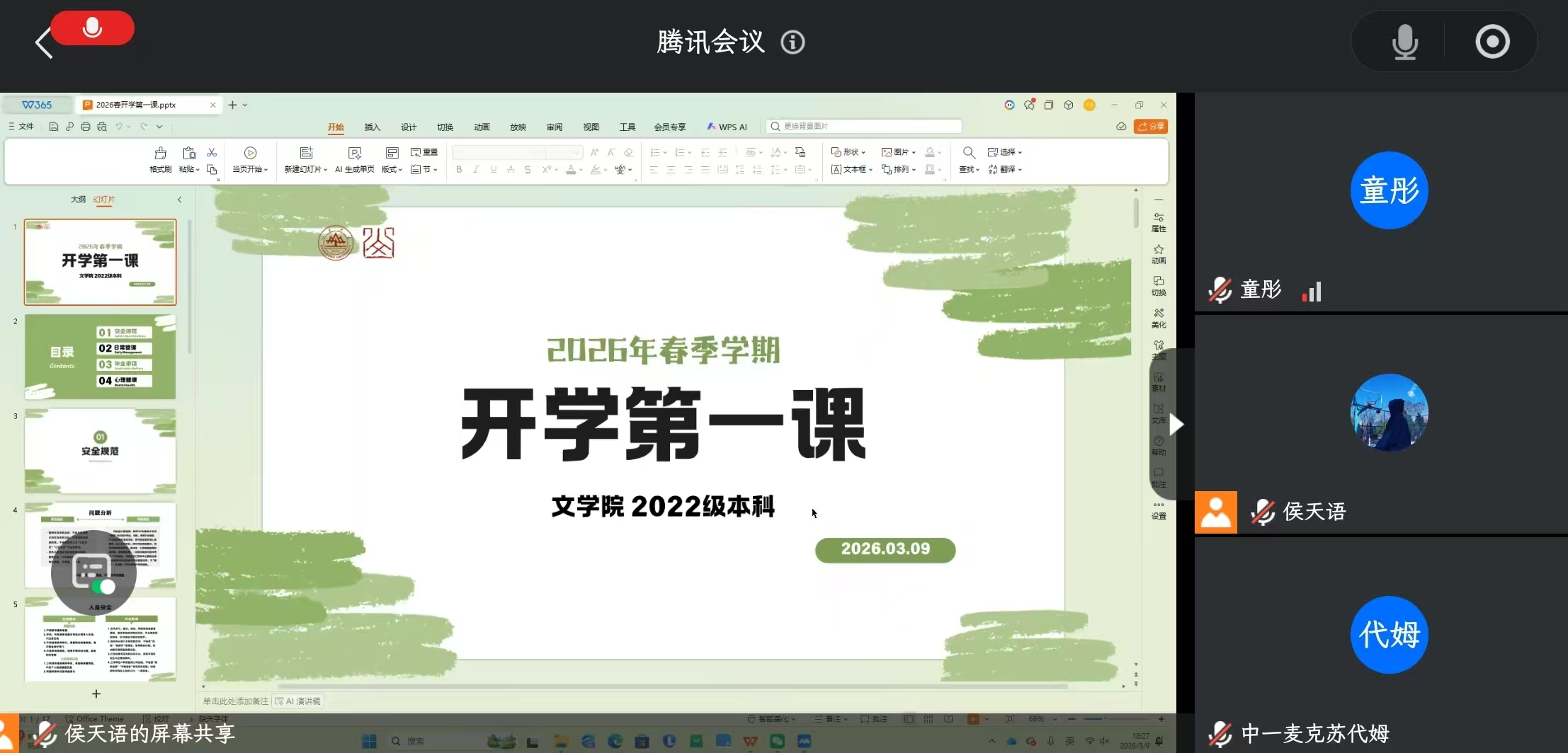 为助力大四学生积极适应新学期新情况,以良好心态合理规划未来、顺利迎接毕业,3月9日晚,我院2022级辅导员侯天语组织开展2022级本科生开学第一课,我院2022级全体学生参加会议。