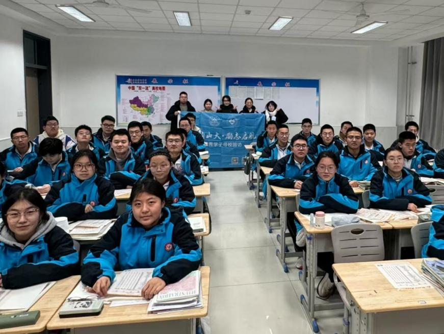 宣讲当日,团队成员提前抵达现场进行布置,通过张贴山大主题海报、循环播放团队自制暖场视频,迅速吸引了学生们的注意力。在正式宣讲环节,主讲人系统介绍了山东大学的发展历程、学科优势、校园生活以及最新的招生政策动向。针对高三学生普遍关注的备考策略、心理调适、专业选择、志愿填报等现实问题,团队特别设置了互动答疑环节。成员们结合自身经验,给予了细致实用的建议,并分享了大学学习与高中阶段衔接的方法。活动现场交流踊跃,许多学生就具体专业的课程设置、发展前景、校园活动等进行了提问。为建立长效沟通机制,团队现场组建了线上联络机制,搭建起一座跨越学段的“连心桥”,并承诺后续将持续提供信息支持。
