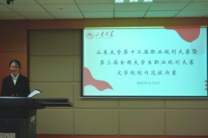 为助力我院学子更好了解职业发展路径,实现个人成长和职业目标精准对接,11月6日晚,我院于知新楼A620举办山东大学第十二届职业规划大赛暨第三届全国大学生职业规划大赛院内选拔决赛。本次大赛由文学院学生会社会工作部李奕锦主持,文学院研究生教务老师果娜,文学院辅导员老师孙雅乔、宋海涛、孙铭孺、佟姜缘、侯天语共同担任评委,各年级参赛选手、学生评委以及社工部全体成员参与本次活动。