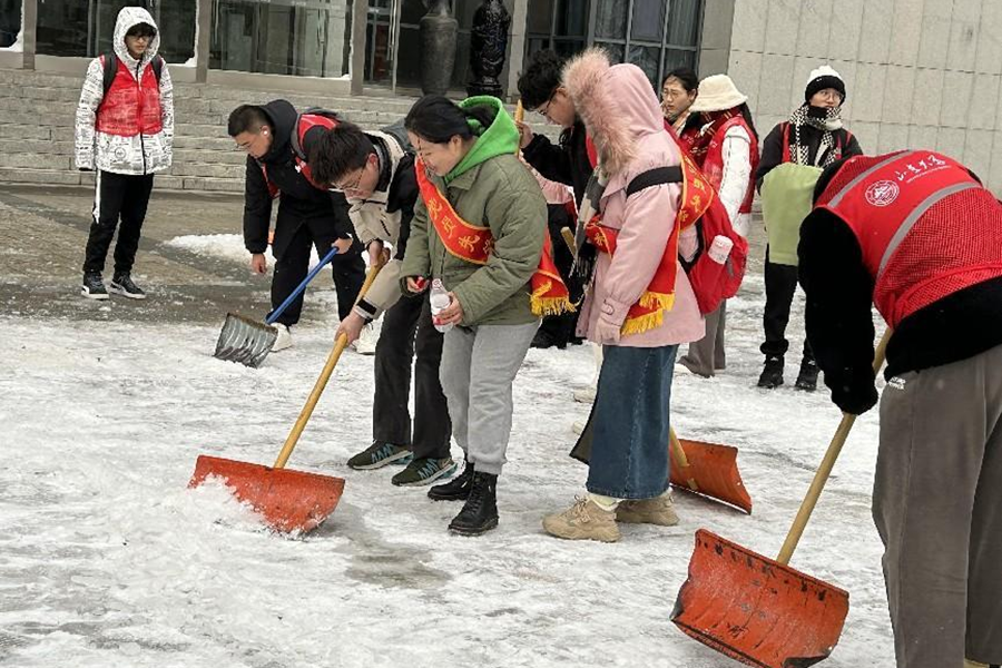 12月14日,受西南暖湿气流和冷空气的共同影响,济南市区迎来大暴雪,山东大学中心校区内道路积雪结冰严重。为响应学校《关于动员广大青年积极参与校园扫雪除冰的倡议》,及时应对天气情况,减小校内人员出行阻力,同时鼓励青年在实践中发扬劳动精神、磨砺劳动意志,15日下午,我院于校内人流量较大区域组织开展校园扫雪除冰志愿服务活动。