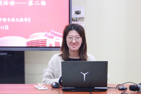 11月11日晚,我院于知新楼A606举办第二场“问学津梁·撷英荟”朋辈学术圆桌对谈活动。本次活动邀请中国古代文学专业硕士于心雨、中国古典文献学专业硕士郝展韬担任主讲嘉宾,学术部干事岳婉婷主持活动。