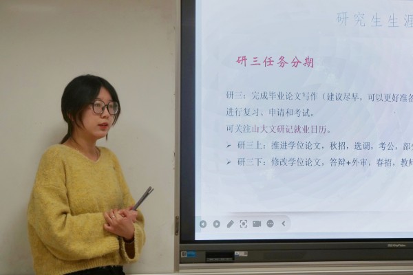徐怡博坚持问题导向,从自身学业成长过程中遇到的问题出发,围绕选题与文献管理、课程修读与阅读作品、学术规划与心态调整三个方面,详尽分享了比较文学与世界文学专业的学习经验,并建议同学们合理协调课程学习与科研任务,及时进行自我调整,以良好心态应对求学过程中遇到的困难。