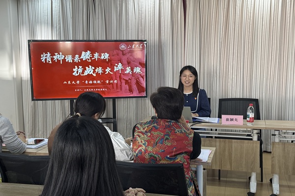 为深切缅怀革命先烈、传承伟大抗战精神,在纪念中国人民抗日战争暨世界反法西斯战争胜利80周年的重要节点,9月25日下午,山东大学文学院硕士生第一党支部、山东大学“青语领航”宣讲团联合华山街道锦城社区党支部,在社区党群服务中心举办“传承抗战薪火 同赴强国征程”党建联学读书会。校地党员齐聚一堂,共学抗战历史,同悟精神力量。