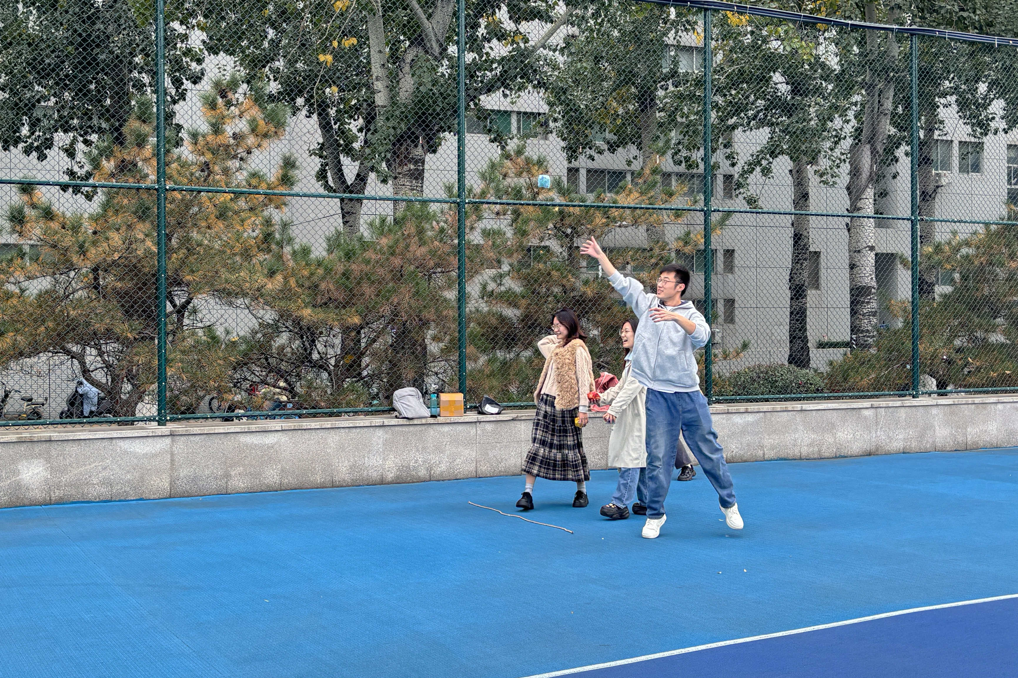 体育场内,团队成员依次向标识圈内投掷沙包,在挥洒汗水、强健体魄的同时,各团队齐心协力、紧盯目标,展现出团结协作与坚韧不拔的精神风貌。