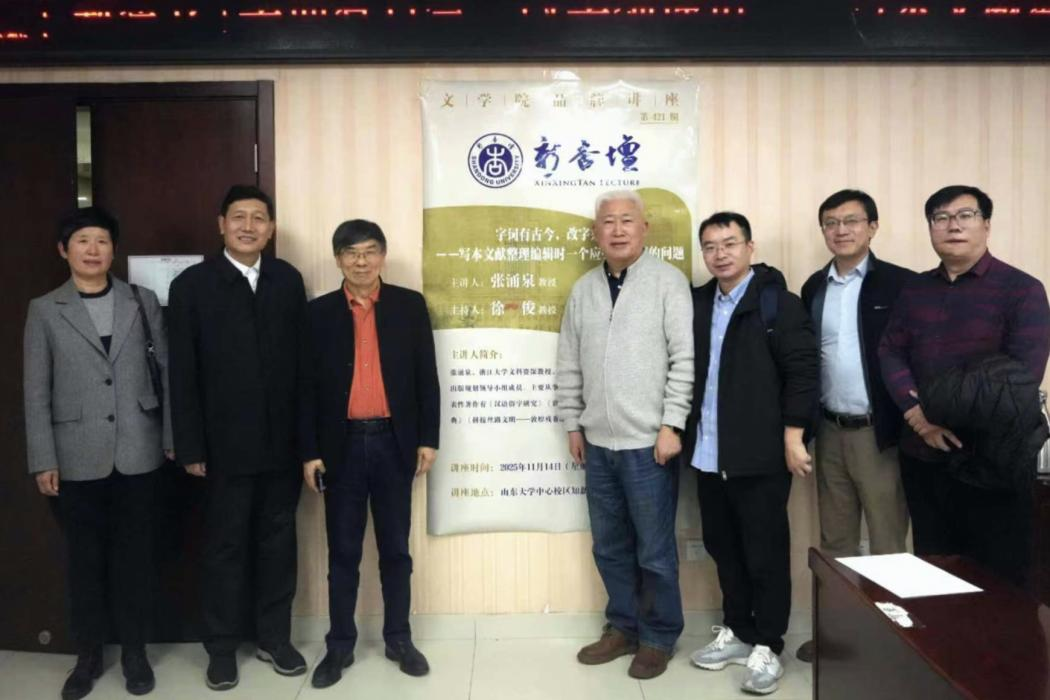 11月14日下午,浙江大学文学院张涌泉教授做客第421期“新杏坛”,于知新楼A620室作学术讲座,题为“字词有古今,改字须谨慎——写本文献整理编辑时一个应引起重视的问题”。讲座由徐俊教授主持,杜泽逊教授、朱新林副教授、孙齐副研究员、张鹏副教授、武绍卫副教授出席,吸引了上百名师生前来聆听。