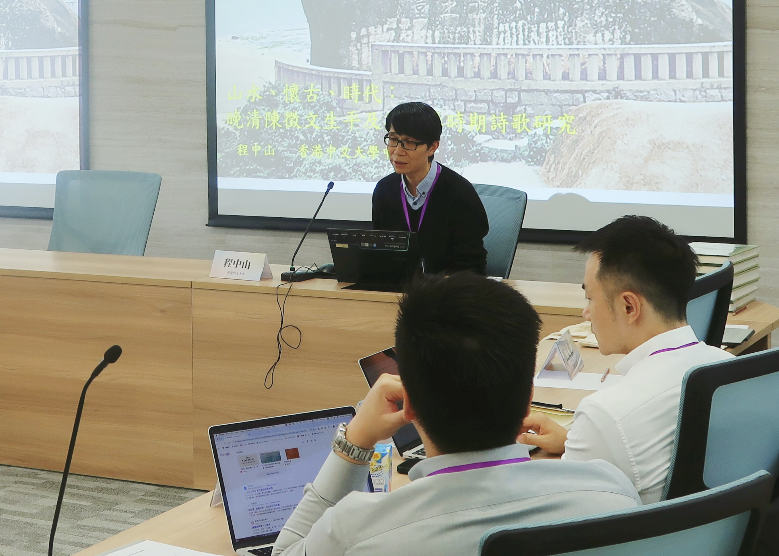 香港中文大学的陈济舟教授、崔文东教授、凌超教授、凌颂荣教授、叶嘉咏教授、程中山教授、陈炜舜教授也分别进行了精彩的主题发言。香港中文大学的学者们学养渊博,论题新颖,分析细致,令我院师生收获良多。