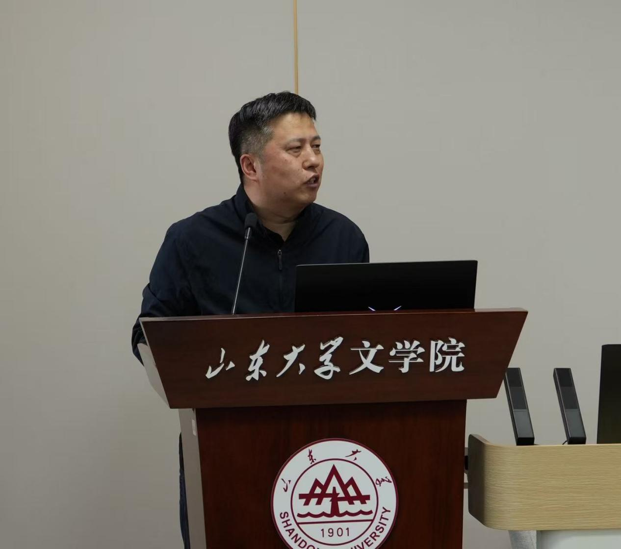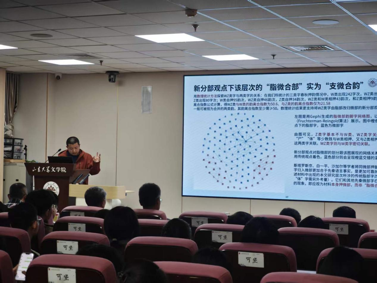 报告会开始,樊庆彦副院长致开场词,他回顾了学年论文报告会举办的缘起和初衷。2019年创办首届研究生学年论文报告会,后逐步覆盖本科生,形成了文学院常态化、规范化的学术活动体系,确立以评促学、以评促改、以评促研的宗旨,搭建起师生互动,同学互学、成果展示的多样化学习平台。它是同学们检验学习、锤炼能力的练兵场,是学院展现学科实力,发扬优良学风的重要窗口,是学术传承、培养学术人才、弘扬严谨学风的广袤沃土,为学科长远发展扎稳根基。