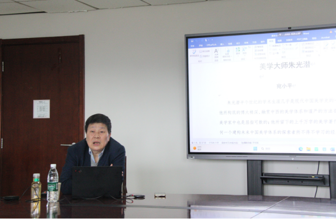 4月19日上午,安徽大学哲学学院教授、安徽省美学学会会长宛小平教授做客望岳讲坛,在知新楼A座906室作了题为“美学大师朱光潜”的学术讲座。讲座由韩清玉教授主持,中心数十名硕博研究生参加。