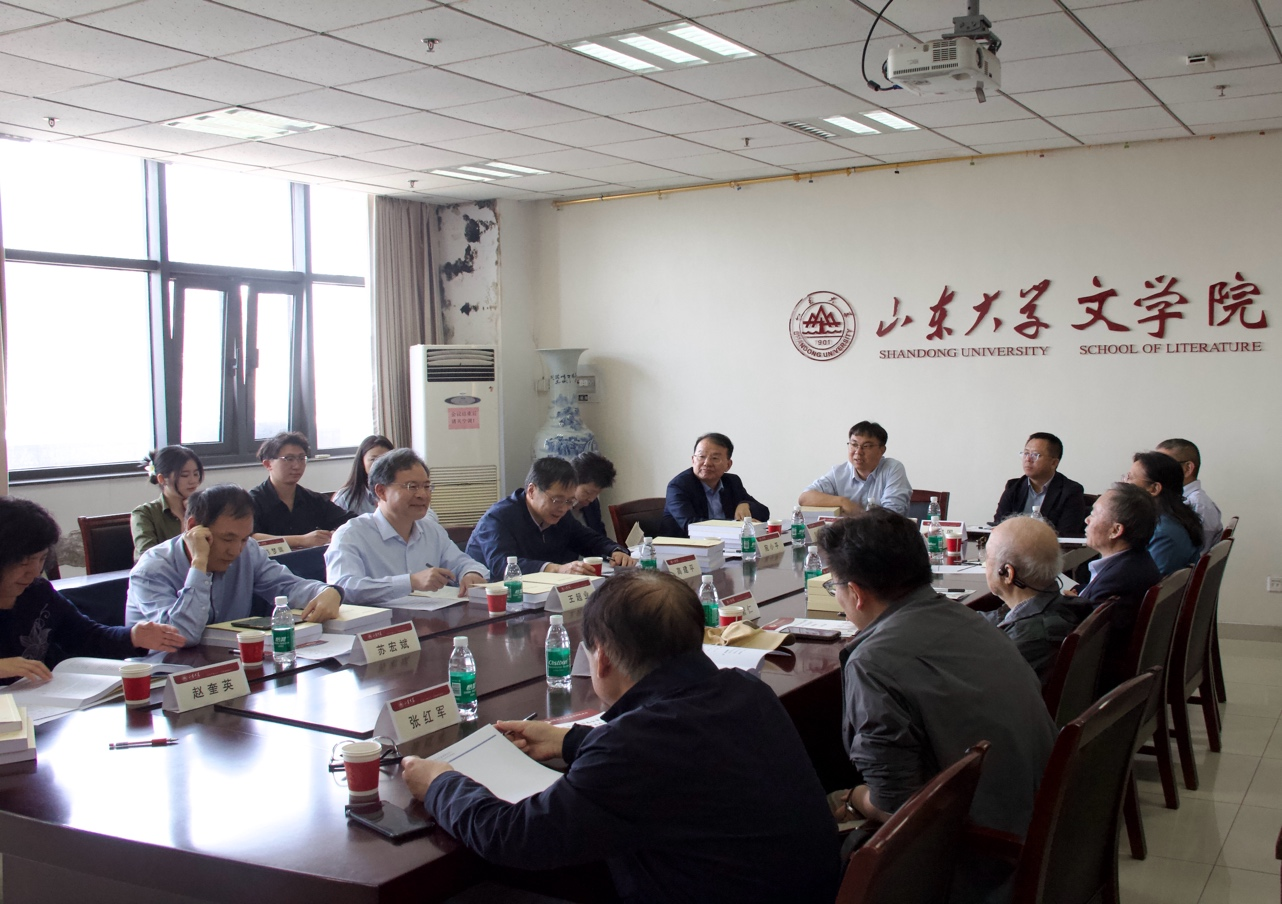 经报国家哲学社会科学规划办公室批准,4月19日,由张红军教授担任首席专家的国家社科基金重大招标项目“西方自然美学通史”结项成果鉴定会在山东大学文艺美学研究中心召开。鉴定会由山东省委宣传部理论二处处长、省社科工作办主任王超业主持,中华美学学会会长高建平、安徽大学哲学教授系宛小平、浙江大学文学院教授苏宏斌、天津师范大学文学院教授赵利民、南京大学艺术学院教授赵奎英等专家组成员,张红军及部分课题组成员,以及文艺美学研究中心名誉主任曾繁仁、人文社科研究院院长郑敬斌、文艺美学研究中心主任谭好哲、我院党委书记郭春晓、副院长杨建刚等出席鉴定会。