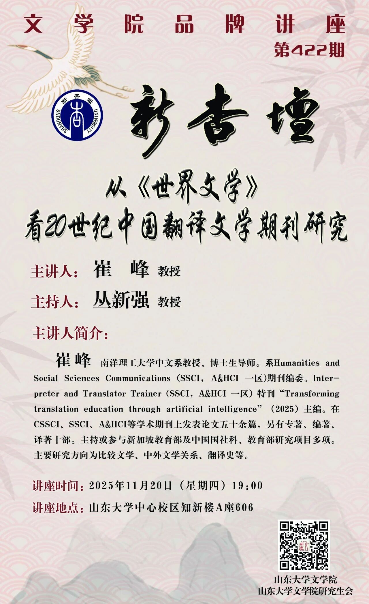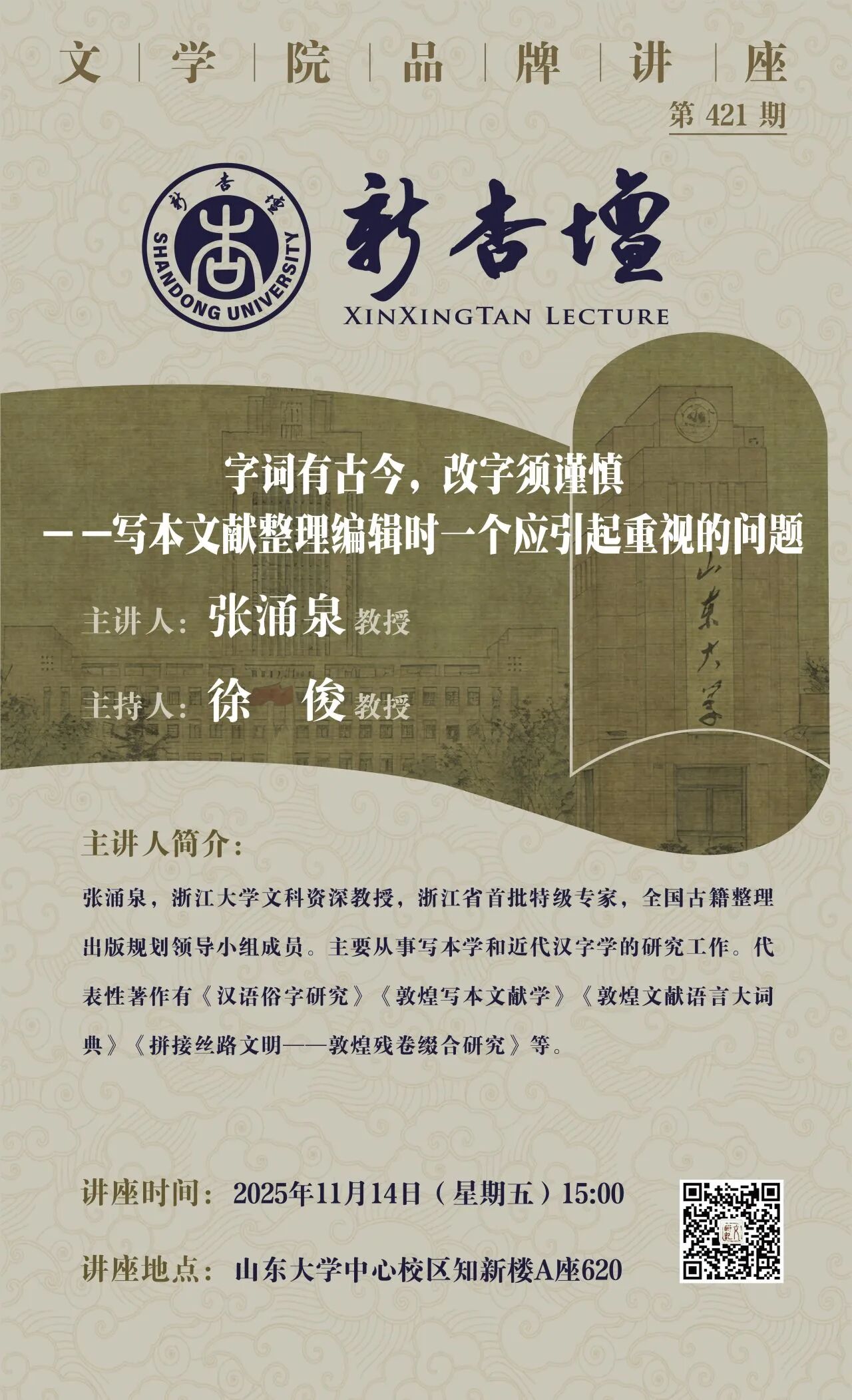 地址:山东大学中心校区知新楼A620